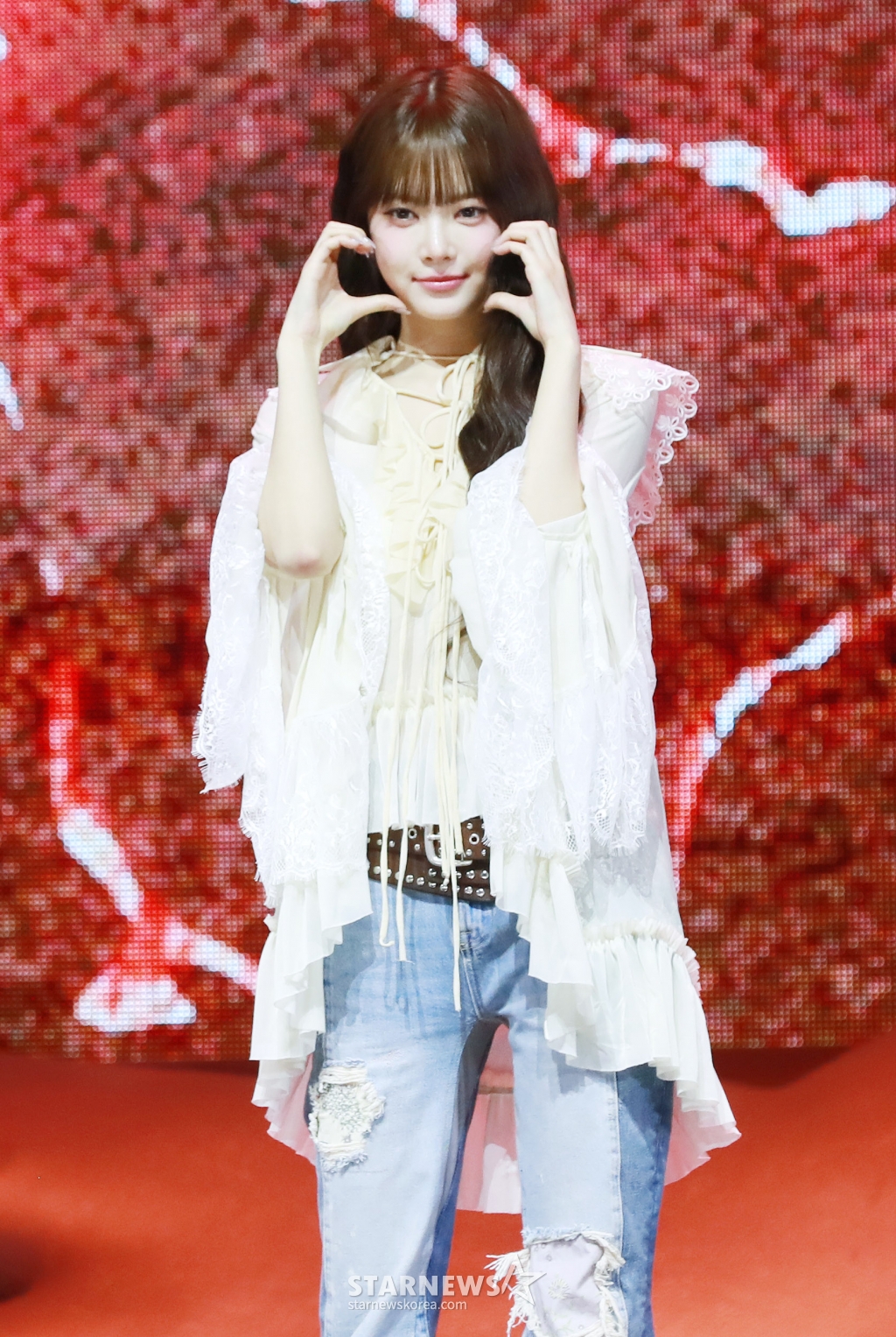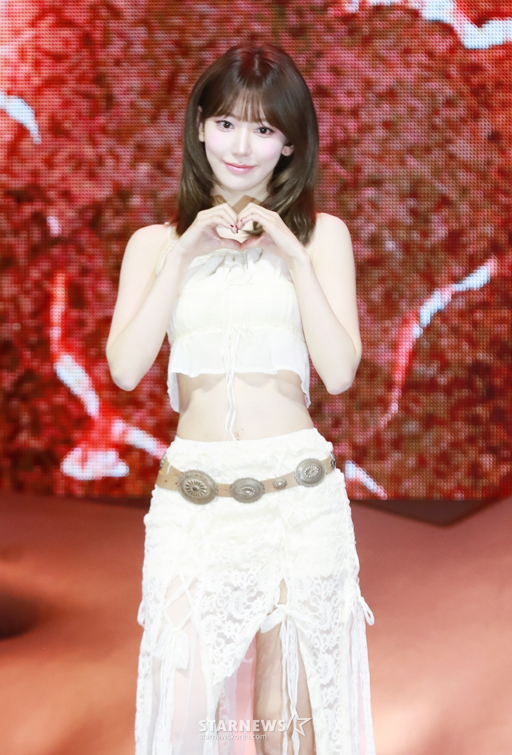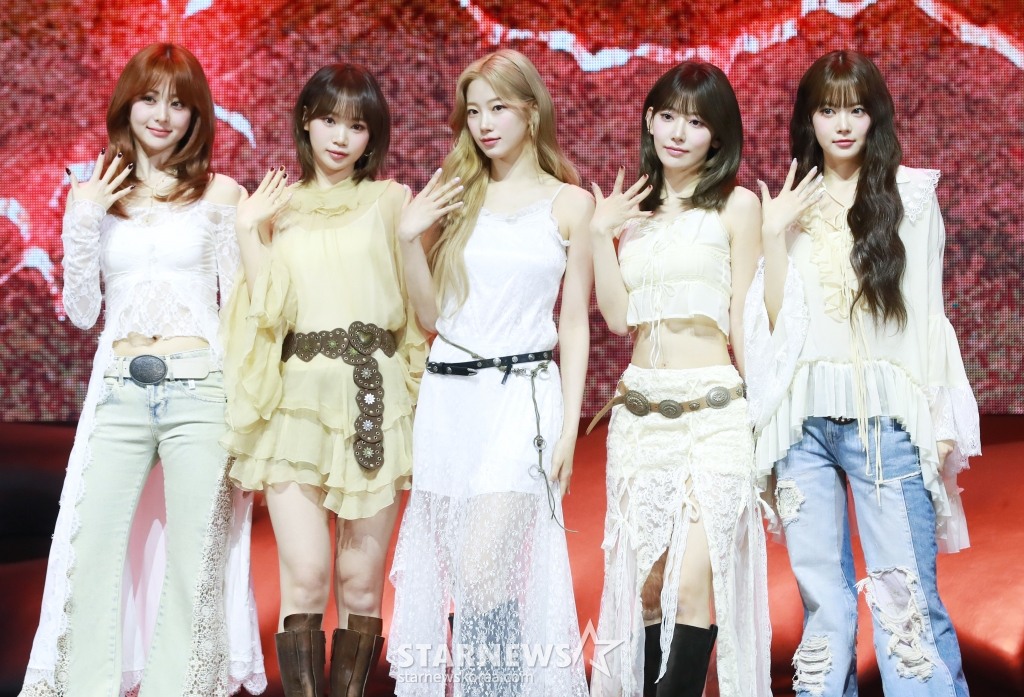 르세라핌(김채원, 사쿠라, 허윤진, 카즈하, 홍은채)은 14일 오전 서울 광진구 광장동 예스24라이브홀에서 다섯 번째 미니앨범 '핫(HOT)' 발매 기념 쇼케이스를 개최했다.