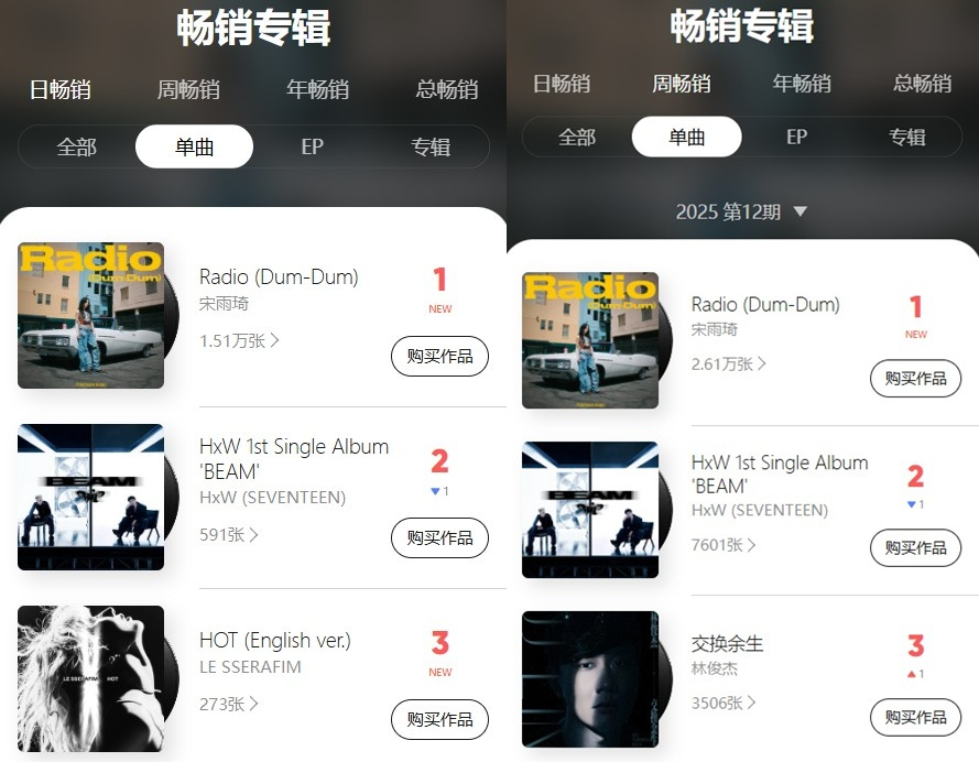 'Radio (Dum-Dum)'는 공개 직후 중국 최대 음악 사이트 QQ뮤직에서 디지털 베스트셀러 앨범 일간, 주간 차트 싱글 부문 1위에 오르며 현지의 뜨거운 관심을 받았다. 국내에서도 음원사이트 멜론 HOT100(100일) 순위에 진입하면서 그동안 음원 발매를 기다렸던 팬들의 열띤 반응이 이어졌다.