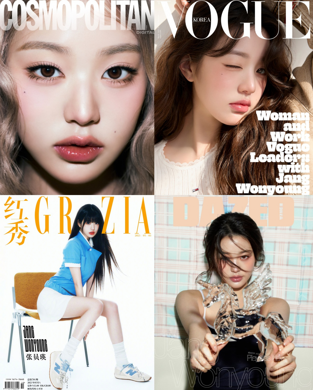 장원영은 올해 초에만 '코스모폴리탄' 2월 디지털 커버를 비롯해 '보그 코리아' 3월호, '그라지아 차이나(GRAZIA CHINA)' 4월호, '데이즈드 코리아' 4월호 등 다양한 패션 매거진의 커버를 장식했고, 다채로운 스타일링을 완벽하게 소화해 내며 패션 아이콘으로서의 입지를 확고히 다졌다.