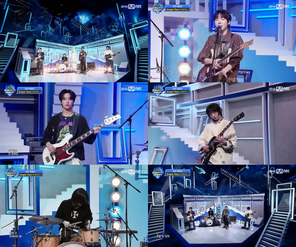 드래곤포니가 음악방송에서 무대를 선보이는 건 이번이 처음이다. 보컬 안태규의 폭발적인 보컬에 더해 편성현, 권세혁, 고강훈의 강렬한 연주까지 어우러져 압도적인 몰입감을 선사했다. 꿈을 향해 질주하는 청춘들의 뜨거운 음악적 에너지를 파워풀한 밴드 퍼포먼스로 그려냈다.