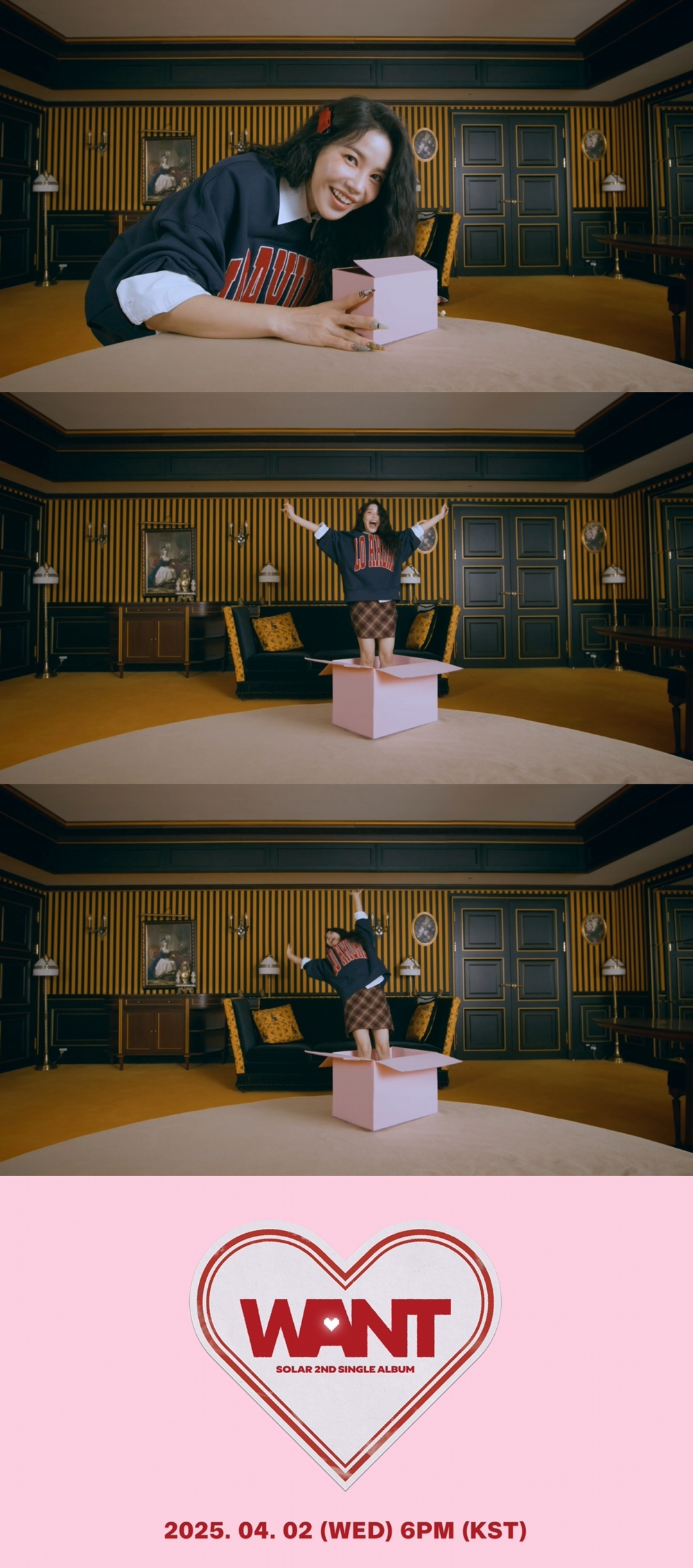 'WANT'는 솔라가 내놓는 두 번째 싱글로, 사랑이 시작되는 순간을 설렘 가득한 핑크빛 무드로 녹여냈다. 솔라는 사랑의 용기를 불어넣는 '시크릿 파트너'로서 사랑에 주저하는 모든 이들에게 희망과 자신감을 전해줄 예정이다.