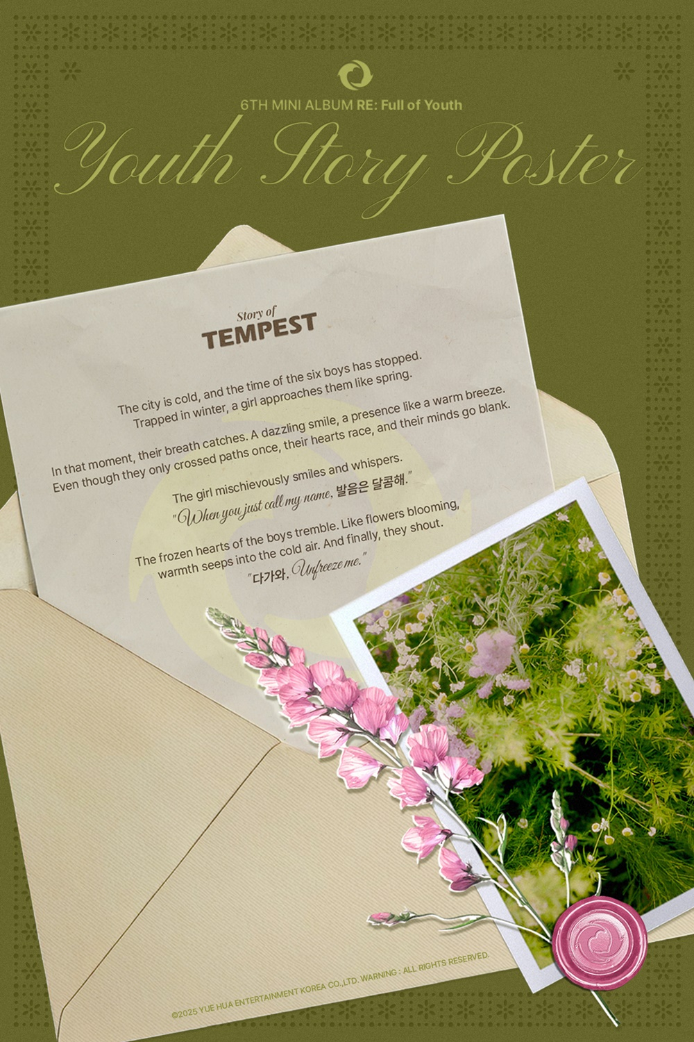 'Unfreeze'는 겨우내 차갑게 얼어붙어 있던 마음을 한 순간에 녹이는, 봄 같은 사랑을 표현한 곡으로, 그동안 '폭풍' 시리즈를 통해 폭발적인 에너지를 발산했던 템페스트의 새로운 매력을 엿볼 수 있을 예정이다.