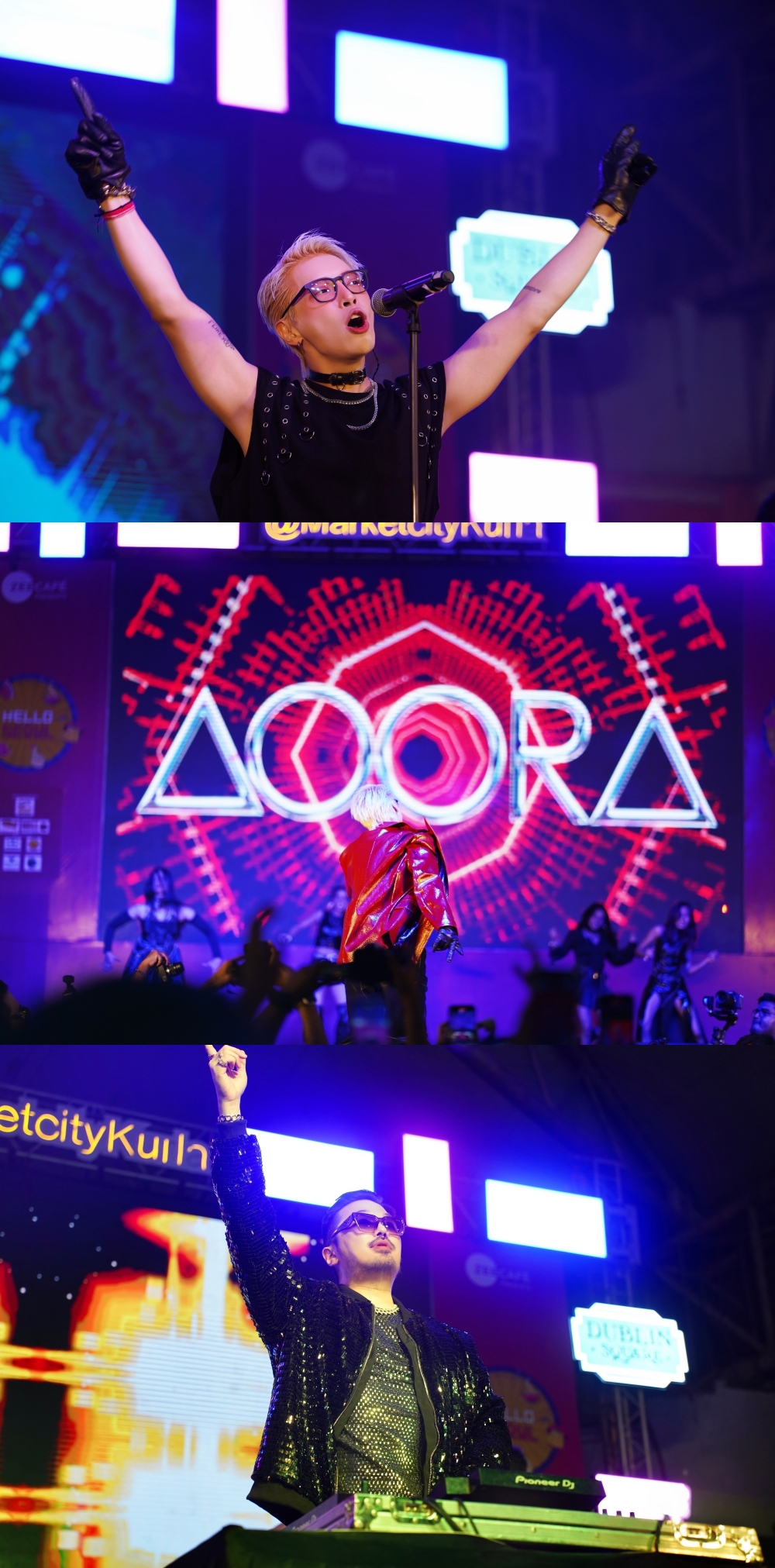 아우라는 자신의 곡 'TWERK', 'Jimmy Jimmy', 'AUVA AUVA' 등과 발리우드 명곡들을 재해석한 'Buddhu Sa Mann', 'Sooraj Dooba Hain' 등을 라이브로 1시간가량 선보이며 분위기를 뜨겁게 달궜다.