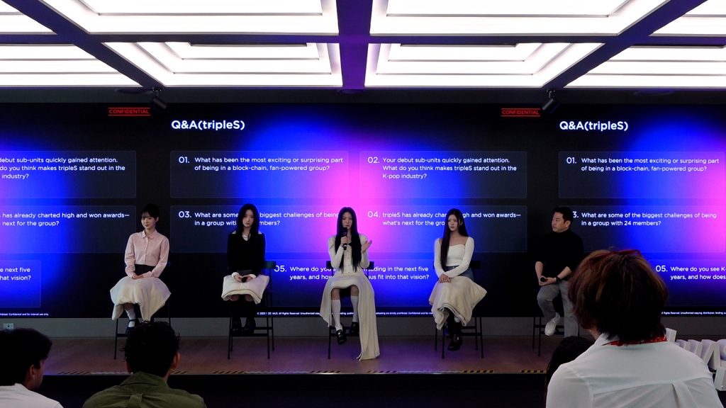 먼저 모드하우스는 전반적인 K-POP 산업의 성장 과정을 브리핑한 뒤, 모드하우스만의 '오픈 아키텍처 엔터테인먼트 생태계' 구축을 소개했다. 또한 공식 어플리케이션 코스모(COSMO)와 그에 연계된 디지털 포토카드 오브젝트(Objekt), 투표권 꼬모(COMO)를 통해 세계 최초의 팬 참여형 걸그룹을 탄생시킨 배경, 아티스트의 제작에 팬들의 직접 참여하는 것은 물론, 그 과정에서의 투명함 확보 등을 강조했다.