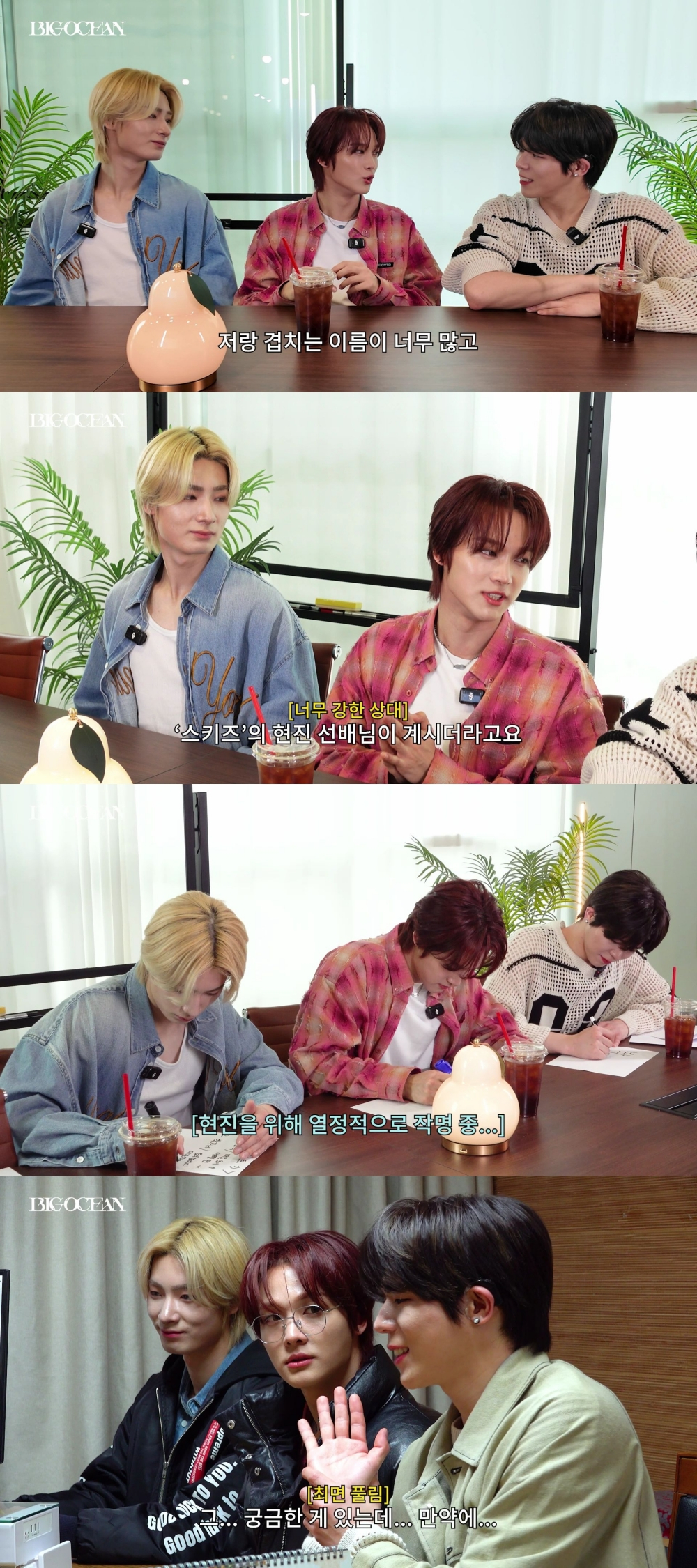 'OCEANVIEW' 1화에서는 빅오션 현진의 예명을 정하는 모습이 그려졌다. 현진은 "제가 본명으로 활동하고 있는데 제 이름을 검색하니까 겹치는 이름이 너무 많고, 그중에서도 스트레이키즈의 현진 선배님이 계신다. 본명 대신에 예명으로 활동할 만한 좋은 이름이 있지 않을까 생각해서 같이 고민을 해보게 됐다"라고 털어놨다.