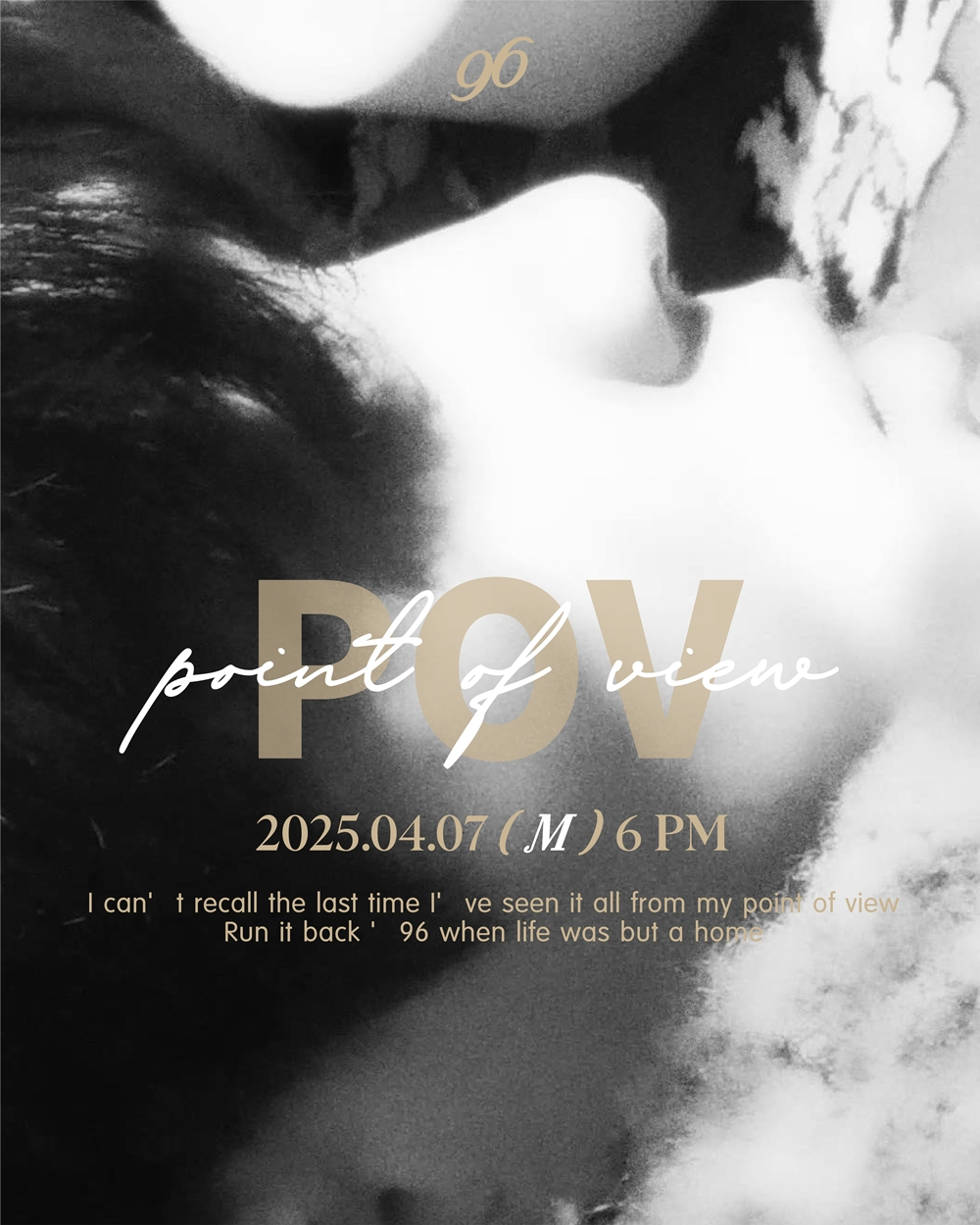 주니(JUNNY)의 옆모습을 담은 감각적인 티저 이미지에는 타이틀곡 'POV'와 그 풀이인 'Point of View(포인트 오브 뷰)'가 적혀 있다. 이와 함께 "인생이 집에 불과했던 96년으로 돌아가보자"라는 뜻의 영어 문구가 새 싱글 '96'의 특별한 메시지를 예고하고 있다.