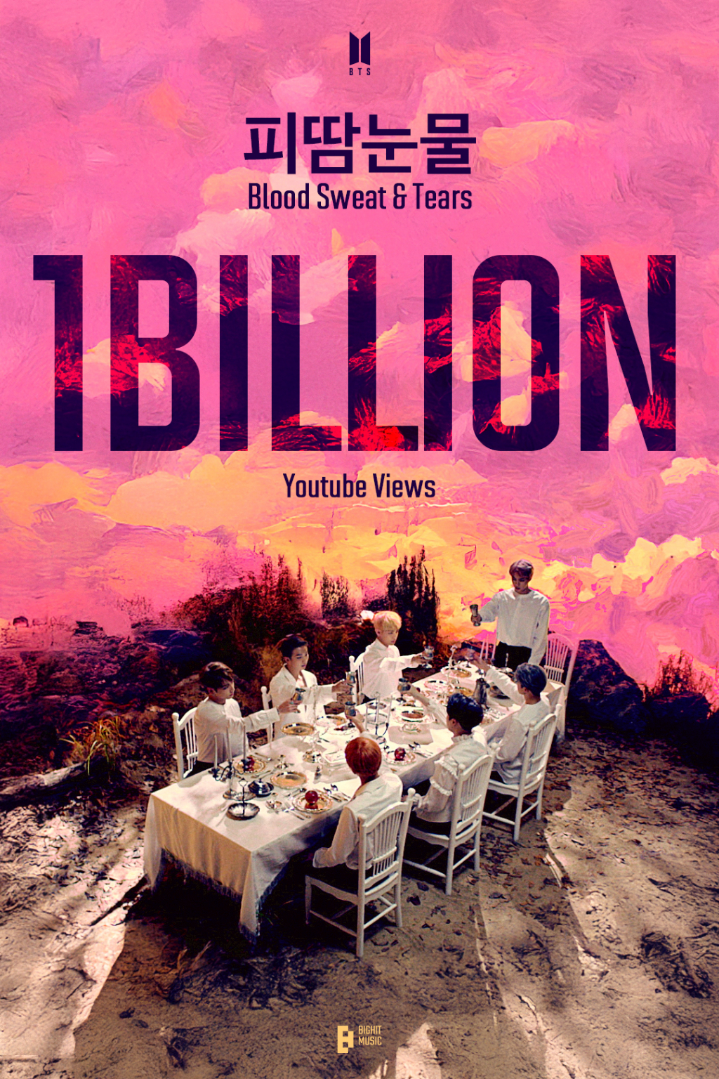방탄소년단의 '피 땀 눈물' 뮤직비디오가 10억 뷰를 달성했다.