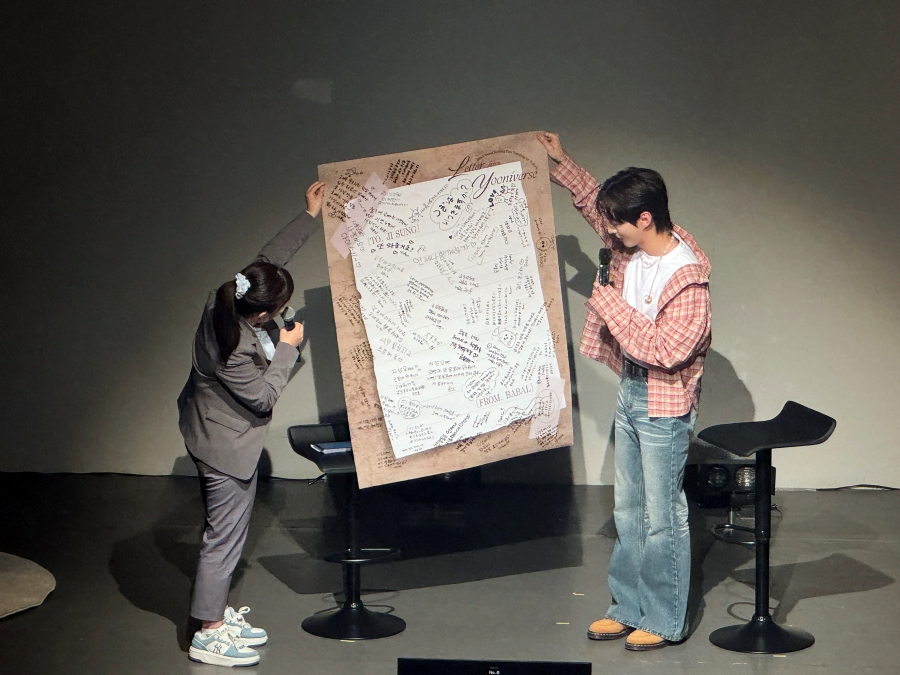 이 외에도 키워드를 몸짓으로 표현해 정답을 맞히는 '몸으로 말해요', 예측 불가한 미션을 즐기는 '주사위 랜덤 미션 게임'과 동물 소리와 행동으로 단어를 맞히는 '동물 소리로 말해요', 팬들에게 직접 테마에 어울리는 음악을 추천하는 '송즈 프롬 윤니버스(Songs from Yooniverse)' 등 다양한 코너에 이어 공연 말미에는 팬들을 위해 직접 작성해 온 손편지를 꺼내 읽으며 애틋한 진심을 전해 현장을 짙은 감동으로 물들였다.