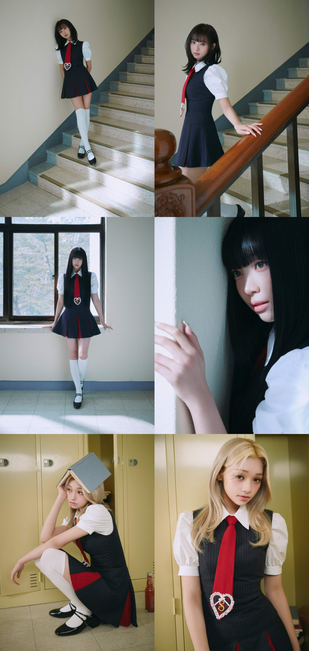 개인 포토에서도 계단, 교실, 복도 등 학교의 다양한 공간을 활용해 저마다 다른 10대 소녀들의 모습을 표현한 진현주와 나나, 젤리당카. 세 멤버의 완벽한 비주얼 합 또한 보는 이들의 이목을 집중시켰다. 유닛 포토에서 이들은 나란히 벽에 기댄 채 한곳을 응시하는 모습으로 청량한 분위기까지 더했다.