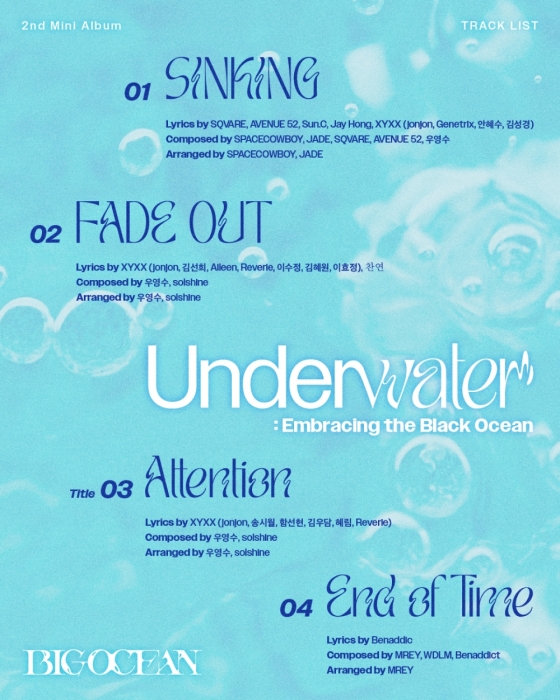 빅오션, 'UNDERWATER' 트랙리스트 공개..타이틀곡 'ATTENTION'