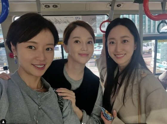 사진 속에는 아유미가 황정음, 전혜빈과 만나 버스를 타고 이동하는 모습이 담겨 있었다.