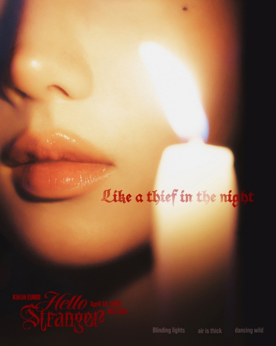여기에 붉은색의 강렬한 폰트로 'Like a thief in the night'라는 문구가 새겨져 있어 신비감을 한 스푼 더했다. 권은비의 촉촉한 입술과 오묘한 감성이 어우러진 커밍순 이미지가 그가 새롭게 선보일 음악과 콘셉트에 대한 호기심을 강하게 자극했다.