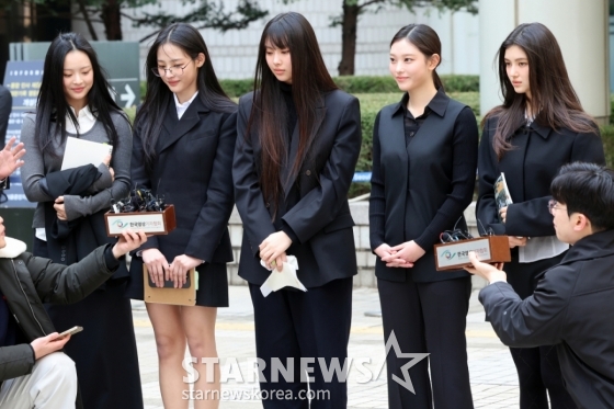 3일 오전 11시 30분 서울중앙지법 민사합의41부는 어도어가 뉴진스(민지, 하니, 다니엘, 해린, 혜인)를 상대로 제기한 전속계약 유효 확인 소송 첫 변론기일을 진행했다.