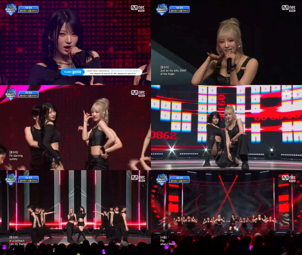 빌리 문수아X시윤, '엠카'서 'SNAP' 유닛 데뷔 무대 ..강렬