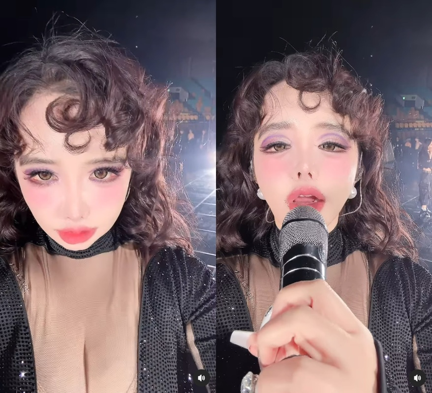 영상 속 박봄은 같은 날 KSPO DOME에서 개최된 '2NE1 앙코르 콘서트' 리허설 현장에서 투애니원의 'Come Back Home'을 열창하고 있는 모습. 그는 블랙 시스루 의상에 퍼플 컬러 아이 메이크업, 레드립으로 포인트를 주면서 인형 미모를 자랑했다.