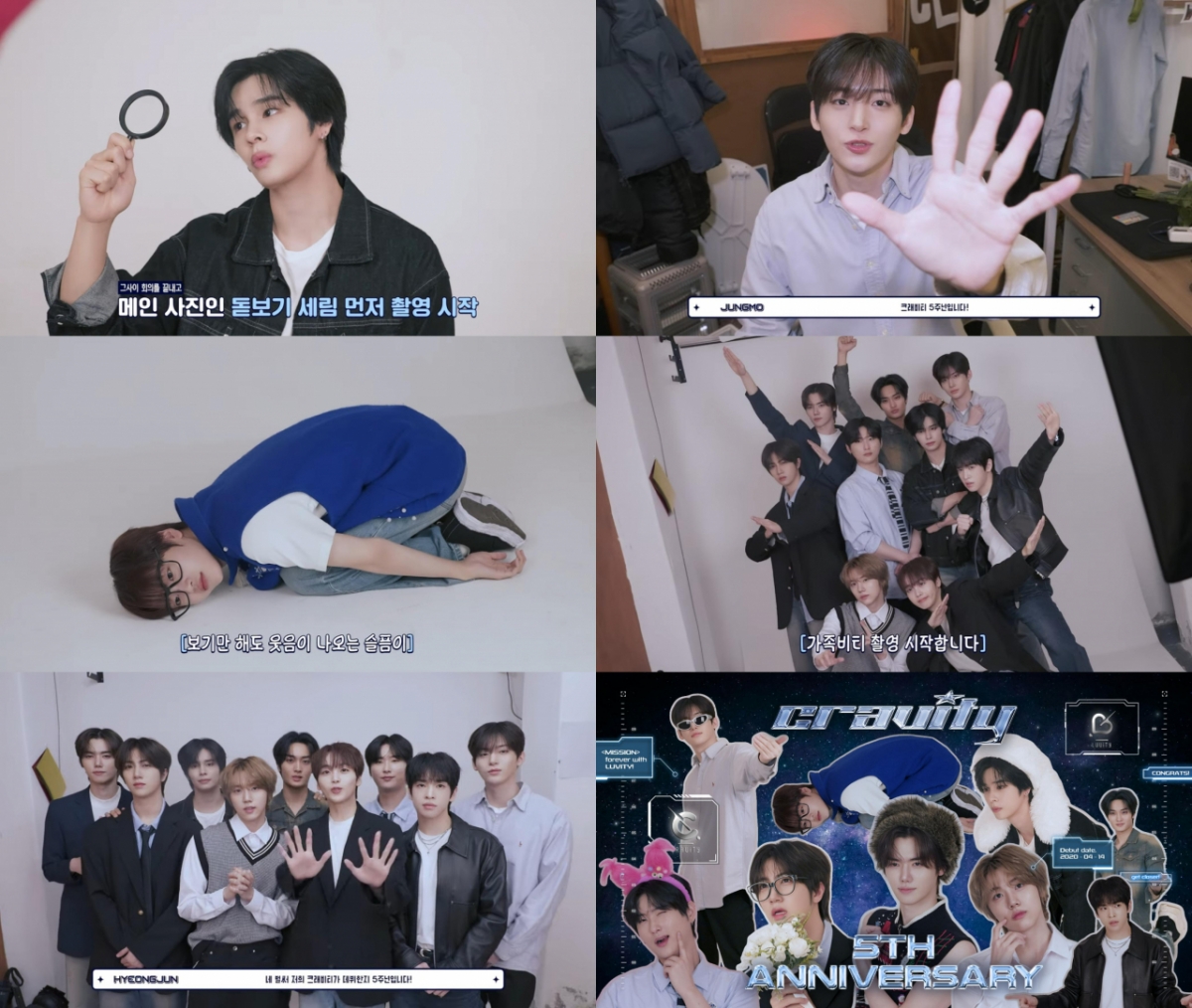 지난 14일 소속사 스타쉽엔터테인먼트는 크래비티 공식 유튜브 채널을 통해 데뷔 5주년 기념 콘셉트 포토의 촬영 현장을 공개했다.