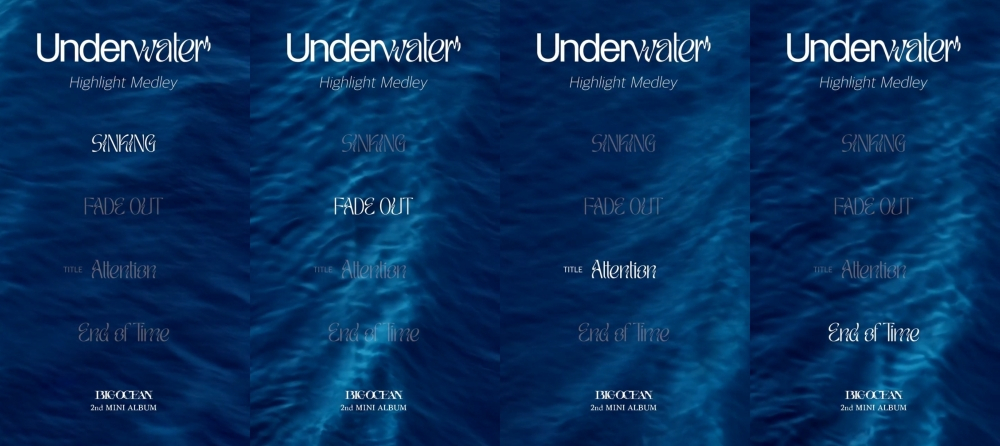 공개된 하이라이트 메들리 영상에는 미니 2집 'UNDERWATER'의 타이틀곡 'ATTENTION'(어텐션)을 포함해 'SINKING'(싱킹), 'FADE OUT'(페이드 아웃), 'END OF TIME'(엔드 오브 타임) 등 총 4곡의 음원 일부가 담겼다.