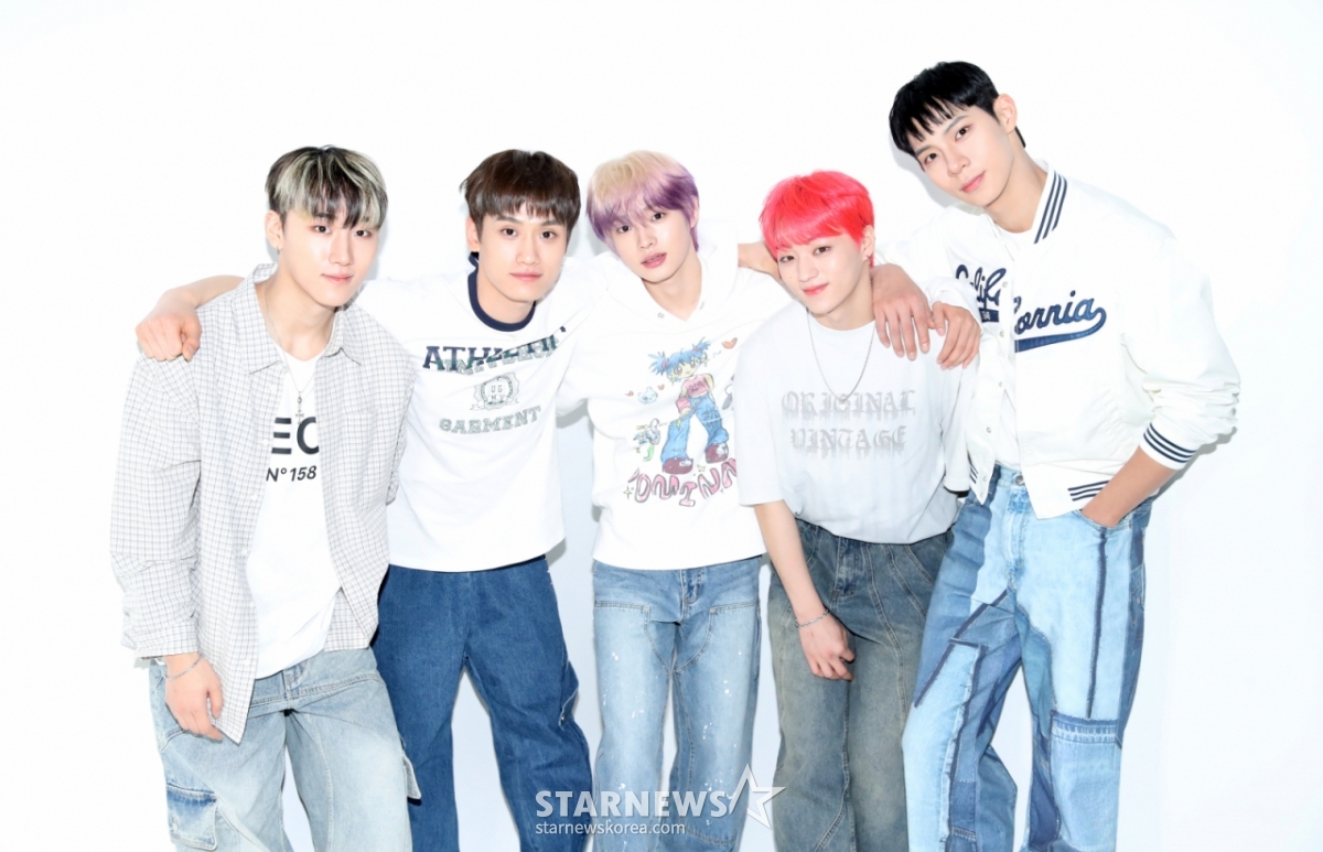 티아이오티(김민성, 금준현, 홍건희, 최우진, 신예찬)는 최근 서울 종로구 서린동 스타뉴스 사옥에서 세 번째 미니앨범 '플렉스 라인(FLEX LINE)' 발매 기념 인터뷰를 진행했다.