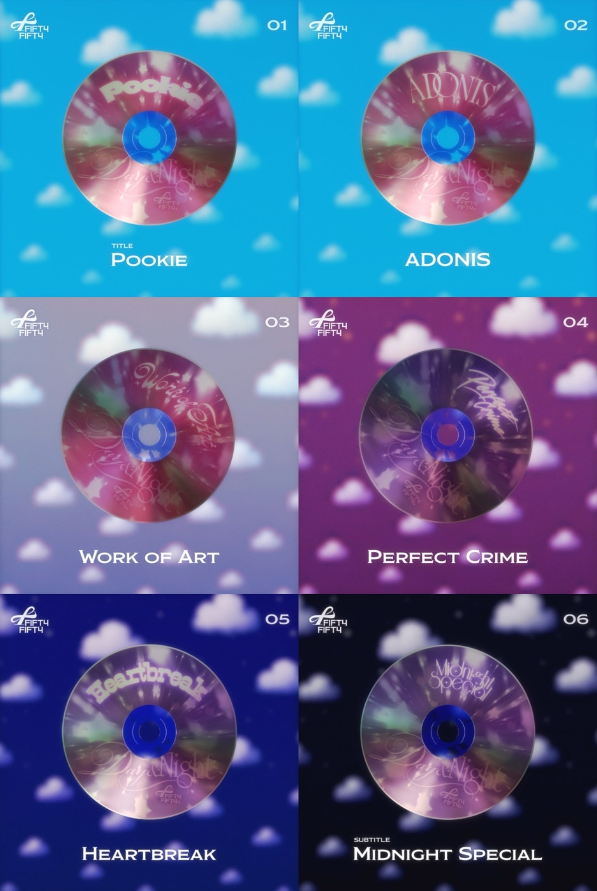 피프티피프티는 더블 타이틀곡 'Pookie(푸키)'와 'Midnight Special(미드나잇 스페셜)' 외에도 감미로운 보컬이 청량함을 더하는 'ADONIS(아도니스)', 올드스쿨 R&B 감성의 레트로풍 발라드 'Work of Art(워크 오브 아트)', 어쿠스틱 기반의 발라드로 섬세한 보컬이 인상적인 'Heartbreak(하트브레이크)' 그리고 선공개곡 'Perfect Crime(퍼펙트 크라임)'까지 더욱 다채로워지고 짙어진 색깔을 선명하게 그려낼 예정이다.