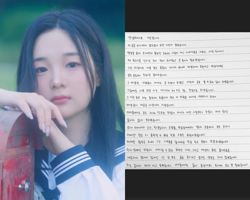 아이돌이라는 길은 제게 단순한 직업이 아니라 어린 시절부터 간절히 바라 왔던 꿈이자 삶의 일부였습니다.