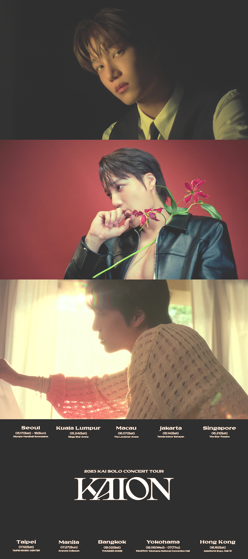 '2025 KAI SOLO CONCERT TOUR <KAION>'(2025 카이 솔로 콘서트 투어 <카이온>)은 5월 17~18일 서울 올림픽공원 핸드볼경기장에서 열리는 공연을 시작으로 아시아 10개 지역에서 펼쳐진다.