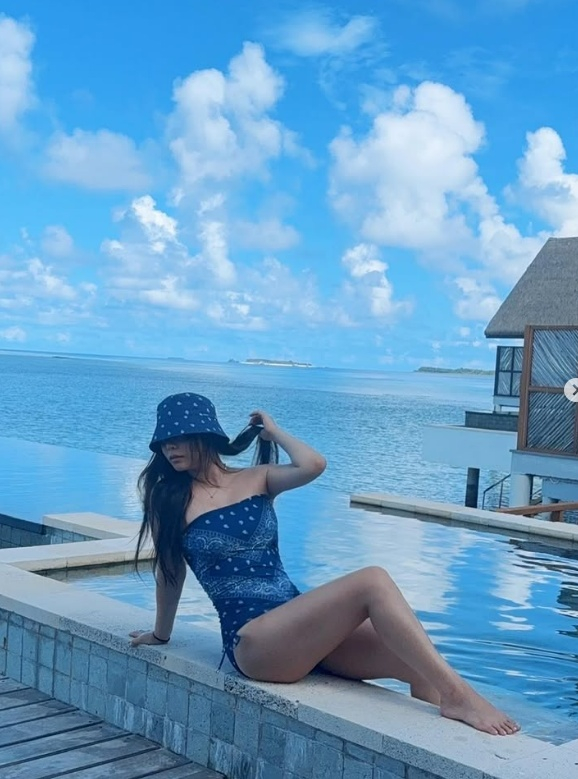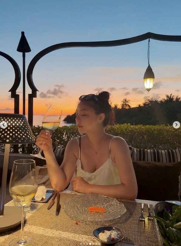 사진 속에는 에일리가 최시훈과 몰디브에서 신혼여행을 즐기는 모습이 있었다. 에일리는 최시훈과 파란색 커플 수영복을 맞춰입고 수영을 하는가 하면, 석양이 지는 곳에서 로맨틱한 식사를 하는 모습이었다.