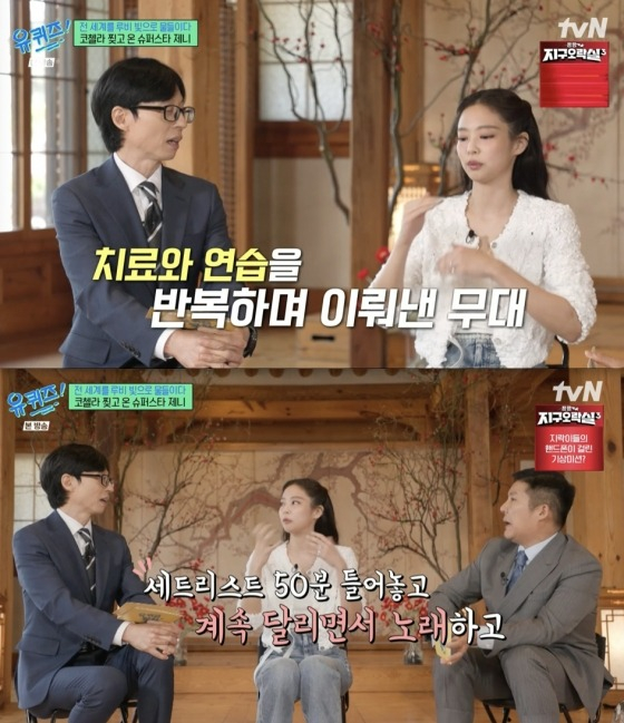 제니는 최근 코첼라에서 50분간의 무대를 위해 연습을 얼마나 했냐는 질문에 "리허설에서 전체를 풀로 해보는 걸 잘 못 했다. 늘 '체력'이 나에게 벽처럼 느껴졌다. 그걸 이겨내고 싶었다"며 "시간 날 때마다 50분 세트리스트를 틀어놓고 계속 달리면서 노래했다. 안 되면 치료도 받으면서 반복 연습했다. 스스로와의 싸움이었다"고 체력의 한계를 극복하기 위한 노력도 밝혔다.