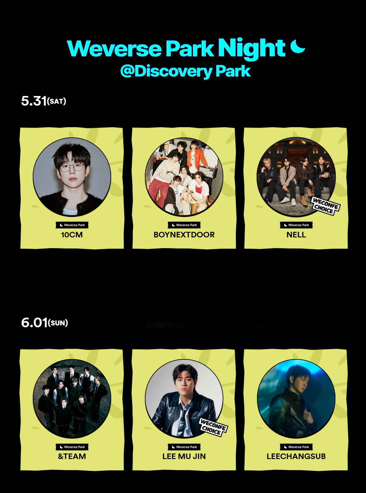 위버스파크 공연은 위콘페 첫 회부터 '올 라이브 밴드(All live band)'로 진행됐는데, 밤 공연에서도 이같은 특징이 이어진다. 특히 칼군무와 강렬한 퍼포먼스를 선보여왔던 K-팝 아티스트들이 라이브 세션을 통해 새로운 매력을 선사한다. 위콘페 3년차인 보이넥스트도어(BOYNEXTDOOR)와 &TEAM(앤팀)은 히트곡들을 밴드 편곡으로 새롭게 선보이며 에너지 넘치는 무대를 예고해 팬들의 기대감을 키우고 있다.