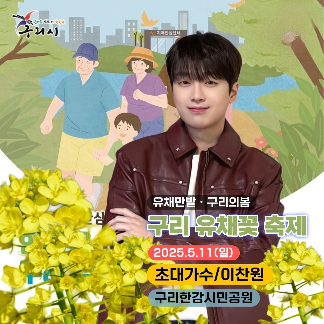 이찬원은 5월 11일 오후 7시 경기 구리시 코스모스길 구리한강시민공원 일원에서 열리는 '2025 구리 유채꽃 축제' 폐막식 무대에 오른다.
