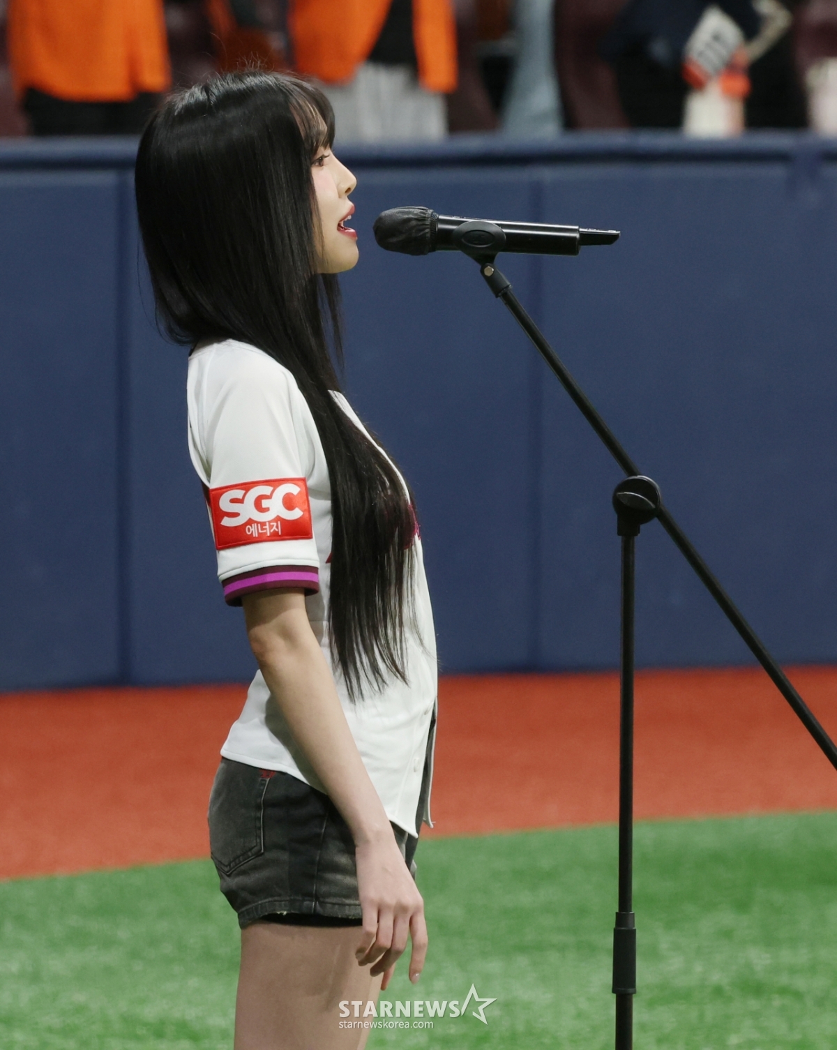 연예K-POP[★포토] 유주 '감미로운 애국가 열창'발행 : 2025.05.11 ・ 14:13수정 : 2025.05.11 ・ 15:45고척=김진경 대기자광고삭제2025 신한 SOL Bank KBO리그 키움 히어로즈 대 한화 이글스 경기가 11일 서울 고척스카이돔에서 열렸다.그룹 여자친구 멤버 유주(YUJU, 최유나)가 키움 승리기원 시구에 앞서 애국가를 제창하고 있다. 시타는 ML 전설의 555 홈런 주인공 메니 라미레즈(전 보스턴 레드삭스)가 시포는 루이스 알리시아가 맡았다.<저작권자 © 스타뉴스, 무단전재 및 재배포 금지>프로야구KBO키움_히어로즈한화_이글스연승김경문_감독추천 기사김진경 대기자기자홈좋아요 연예-K-POP의 인기 급상승 뉴스연예-K-POP의 최신 뉴스