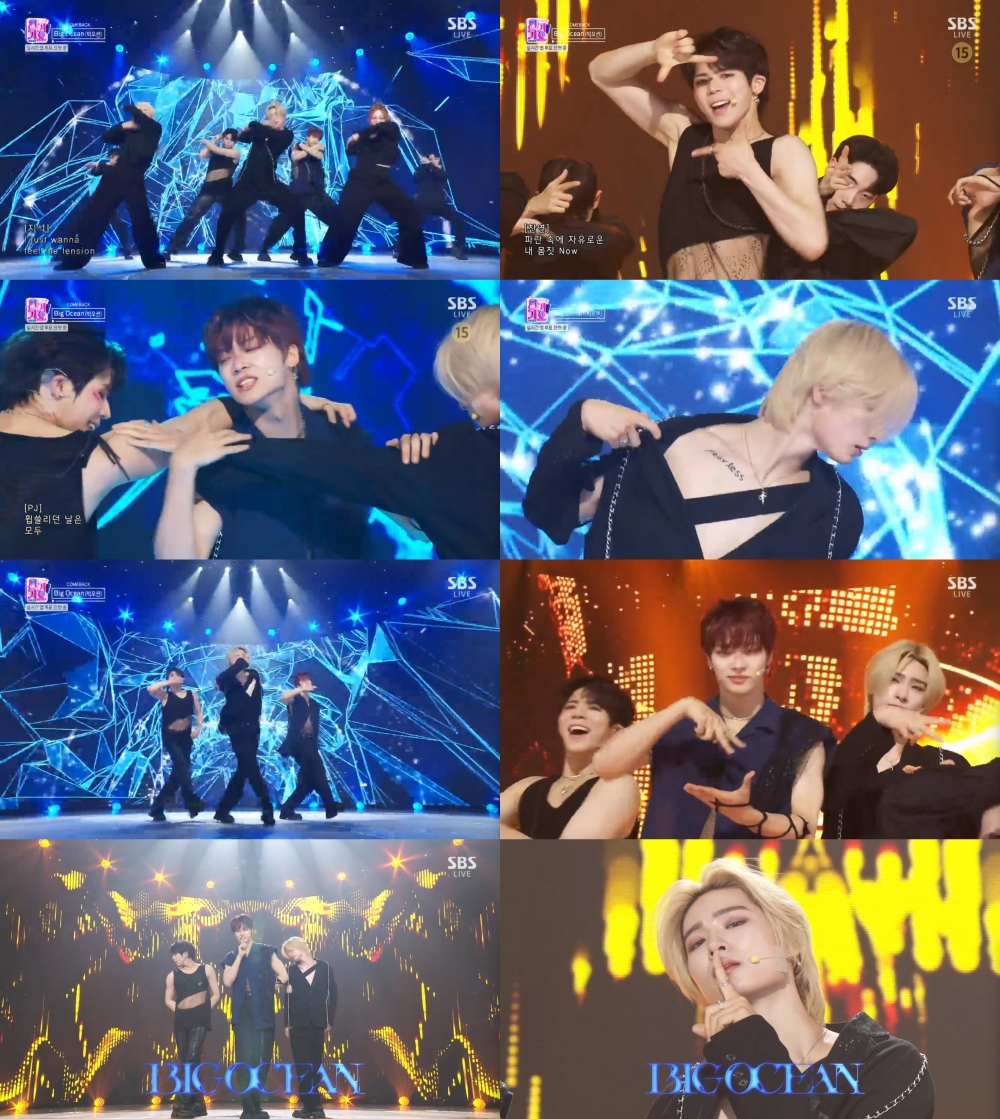 빅오션(찬연, PJ, 지석)이 지난 11일 방송된 SBS '인기가요'에 출연해 두 번째 미니 앨범 'Underwater'(언더워터)의 타이틀곡 'ATTENTION'(어텐션) 무대를 펼쳐 시청자들에게 강렬한 눈도장을 찍었다.