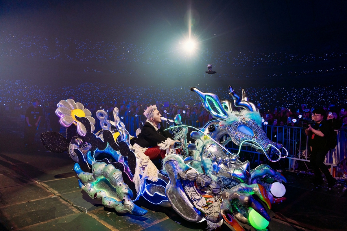 화려한 무대 패션 또한 화제였다. 이번 앨범의 키 컬러인 민트 색상의 슈트와 밀짚모자, 새빨간 장미가 화려하게 수놓아진 장미 재킷과 레더 바지, 레이스 장식과 믹스매치한 그의 트레이드 마크와도 같은 트위드 재킷 외에도 머리 끝에만 핑크 컬러로 염색한 실버 헤어 스타일 등 범접불가한 G-DRAGON만의 특별한 스타일링이 시선을 모았다. 연일 화제의 중심에 있는 그의 패션만큼 이번 공연의 굿즈 또한 예쁘다는 입소문을 타고 있는 가운데, 굿즈를 사기 위해 길게 늘어선 줄이 도쿄돔 전체를 둘러싸며 진풍경을 낳았다.