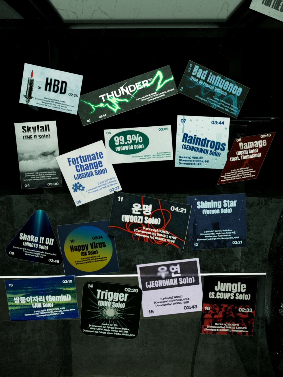 트랙리스트는 세븐틴의 재탄생 파티에 초대된 캐럿(CARAT.팬덤명) 시점의 영상으로 제작돼 호기심을 자극한다. 파티 장소 밖으로 나와 들어간 전화 부스에서 각 곡의 제목이 담긴 스티커들을 차례로 발견하는 영상이다. 금방이라도 번개가 내리칠 듯 으스스한 분위기가 앞으로 펼쳐질 예사롭지 않은 이들의 이야기를 암시한다.