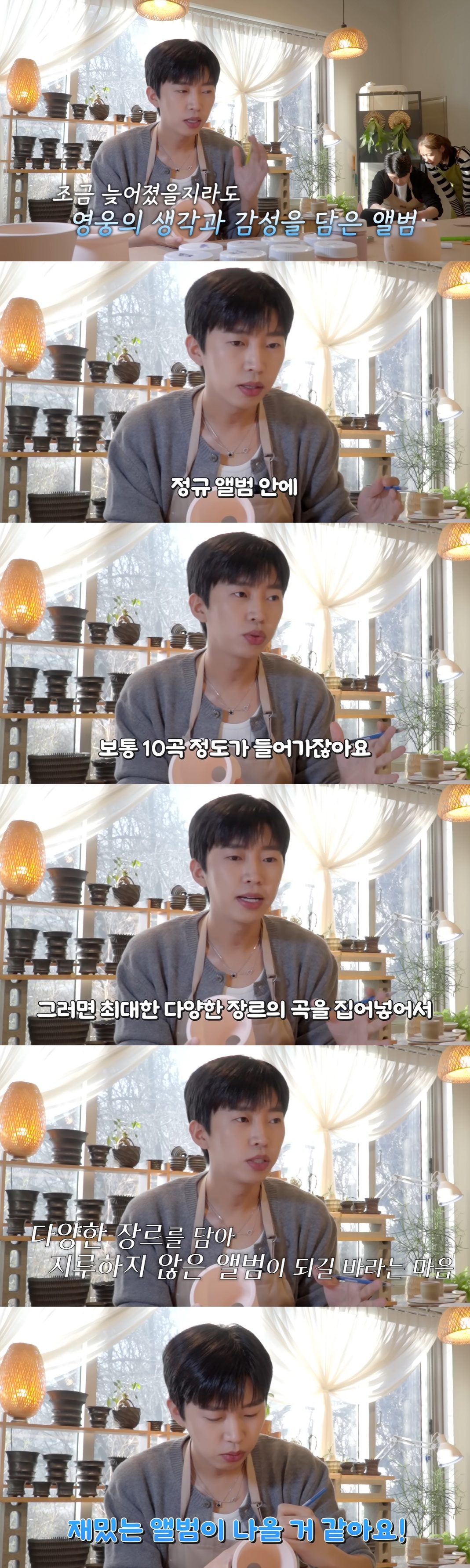 뿐만 아니라 그는 "내가 여태까지 정말 다양한 장르를 했지만 아직도 안 해본 장르가 많기 때문에 그런 곡들이 많이 들어가있다. 진짜 제대로 된 R&B라든지 컨츄리라든지, 가사 작업이 끝난 게 많이 없어가지고 이제 다음주부터 녹음이 슬슬 들어갈 것 같다"라며 정규앨범 준비 과정을 설명했다.