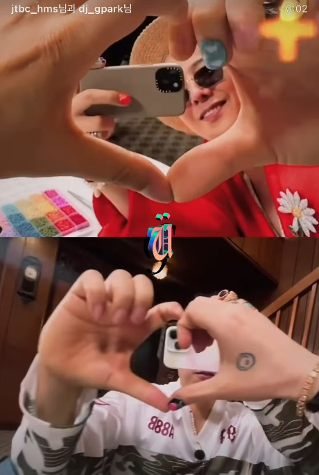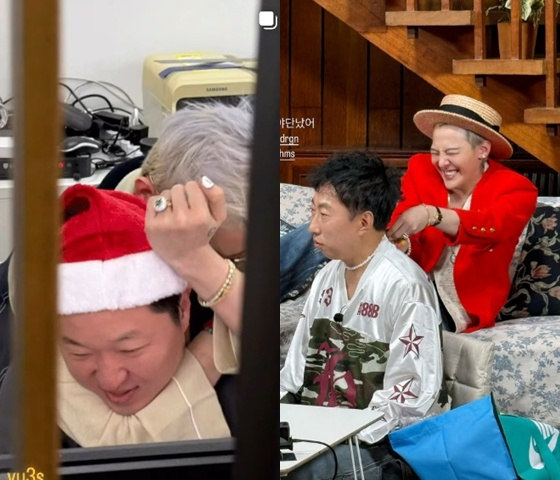 사진 속 지드래곤은 '할명수'에서 박명수와 만나 손하트 커플샷을 만드는가 하면, '제목없음TV'에서 정형돈과 만나 헤드락을 걸며 장난치는 모습을 전했다.