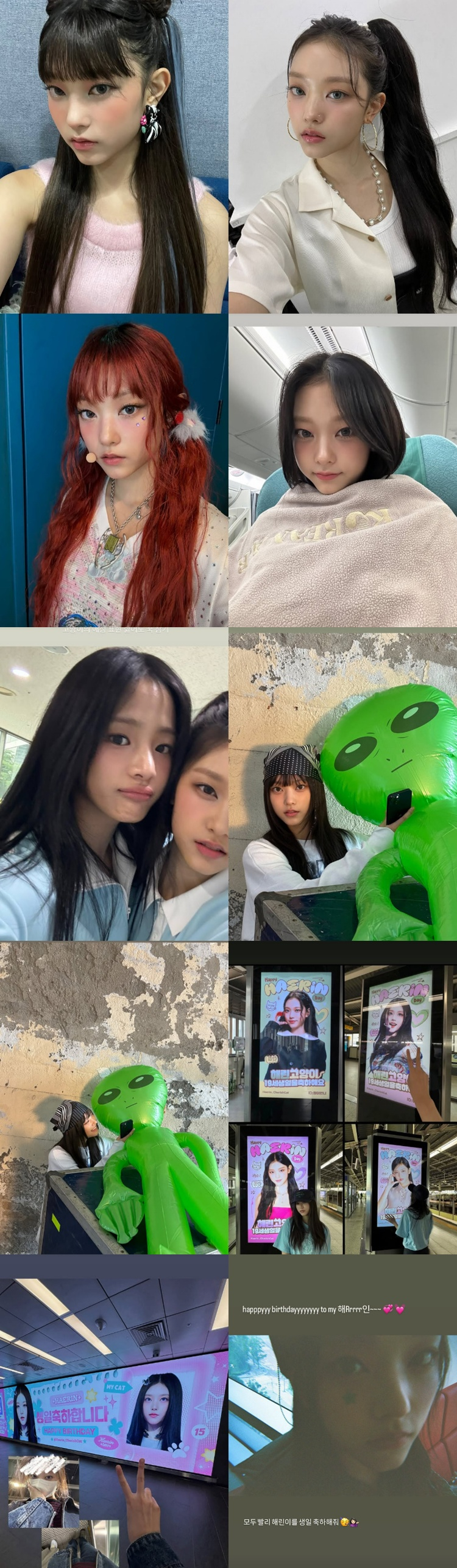 해린은 15일 뉴진스의 새 SNS 계정에 자신의 생일 이벤트 인증샷과 셀카 사진, 영상을 다수 게재했다.