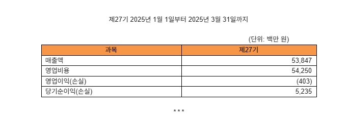 전년 동기 대비 매출액은 소폭 감소했지만, 지속적인 경영 효율화를 통해 영업손실은 전년 동기 대비 약 54% 개선됐다. 또한 당기순이익은 52억 원으로 흑자로 전환했다.