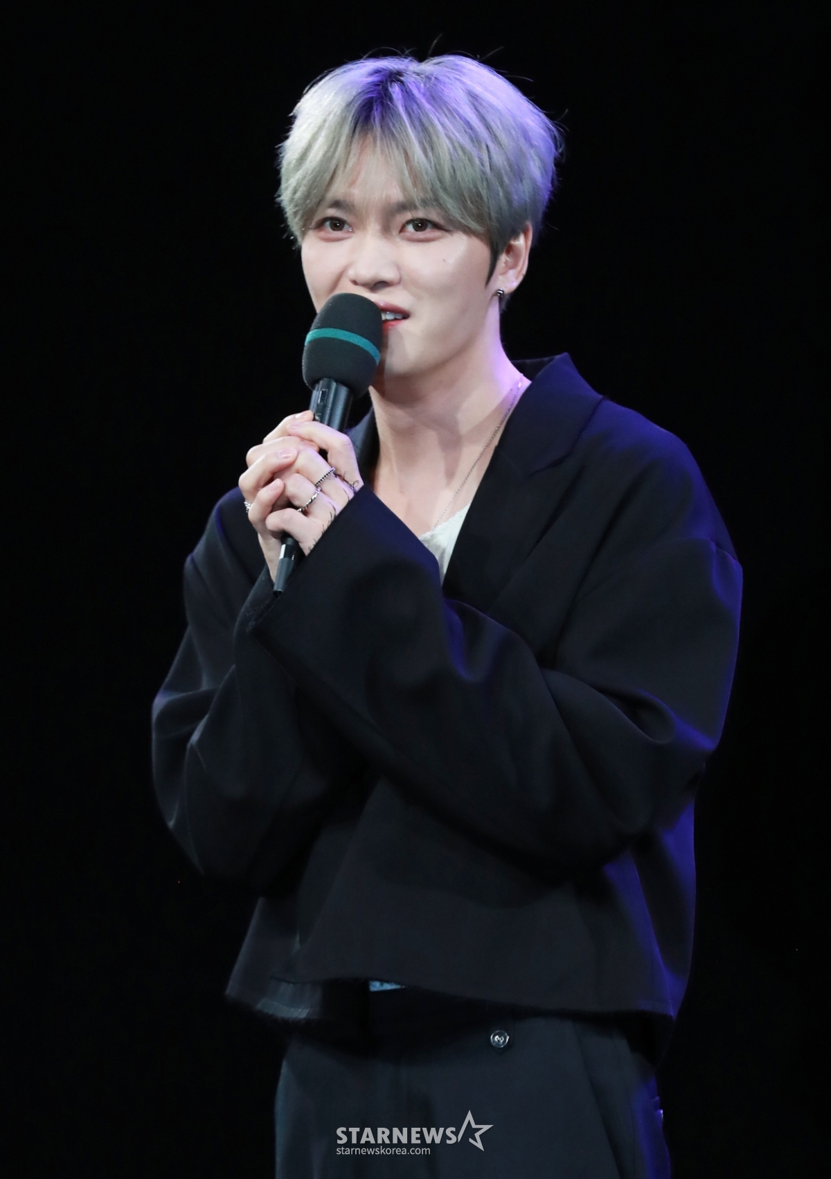 가수 김재중이 19일 오후 서울 마포구 상암동 MBC 사옥에서 진행된 EP 'Beauty in Chaos'(뷰티 인 카오스) 발매기념 기자간담회에 참석해 인사말을 하고 있다.