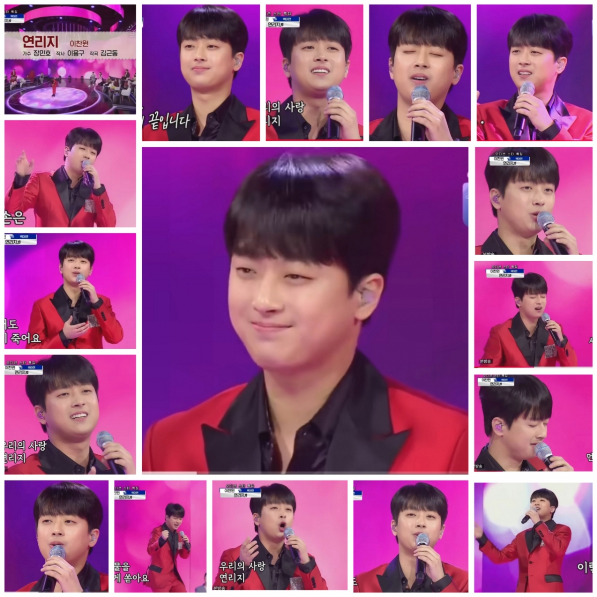 영상에는 이찬원이 TV 조선 '사랑의 콜센타'에서 선보인 '연리지' 무대가 담겼다.