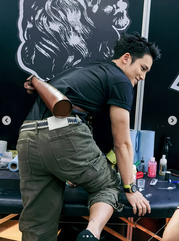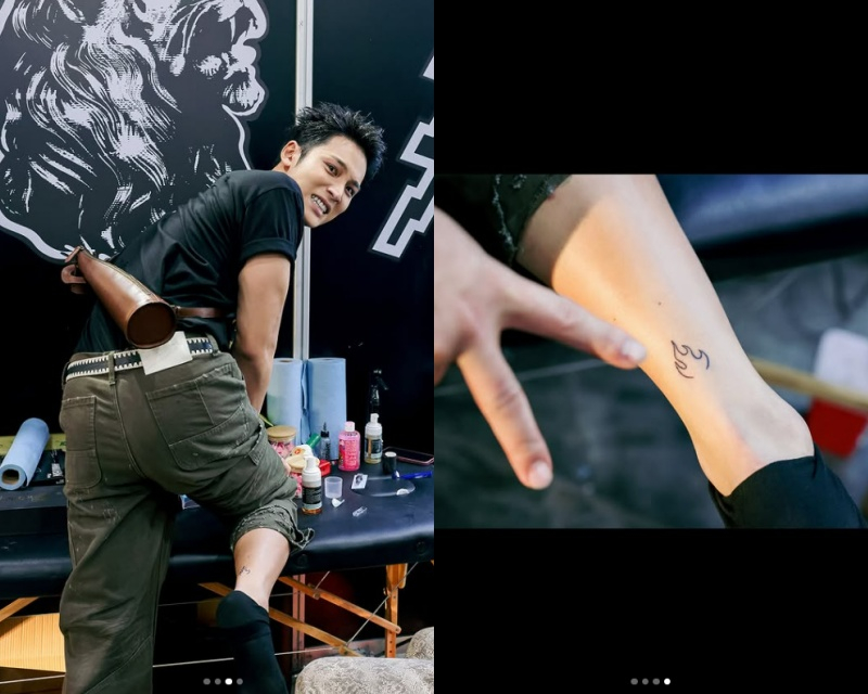 사진 속 민규는 한 타투샵에서 오른쪽 바지 밑단을 걷어올린 채 카메라를 향해 밝게 웃고 있는 모습. 발목 뒤쪽에 보이는 불꽃 모양의 타투가 눈길을 끈다. 민규는 브이 포즈와 함께 타투를 자랑하며 전 세계 팬들과 소통에 나섰다.