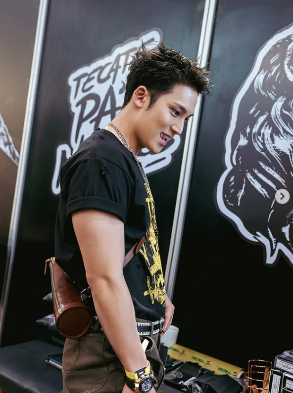 민규는 22일 개인 SNS에 "tattoo"라는 글과 함께 셀카 여러 장을 게재했다.