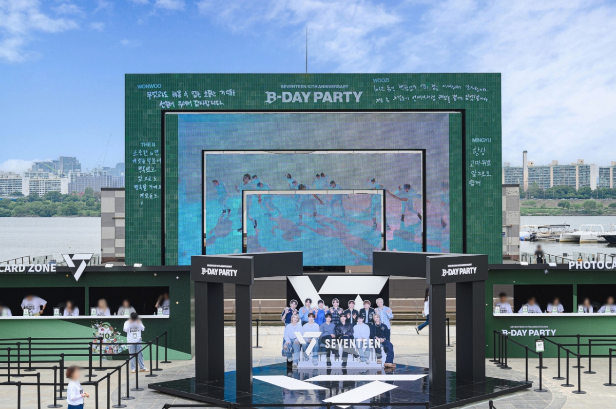 플레디스 엔터테인먼트에 따르면 세븐틴의 데뷔 10주년을 기념한 대형 오프라인 이벤트 'B-DAY PARTY'가 오늘(23일) 서울 세빛섬 일대에서 막을 열었다. 오는 25일까지 단 3일간 펼쳐지는 이 행사는 글로벌 팬들은 물론 일반 시민과 관광객이 모두 함께 즐길 수 있는 성대한 파티의 장이 될 전망이다.
