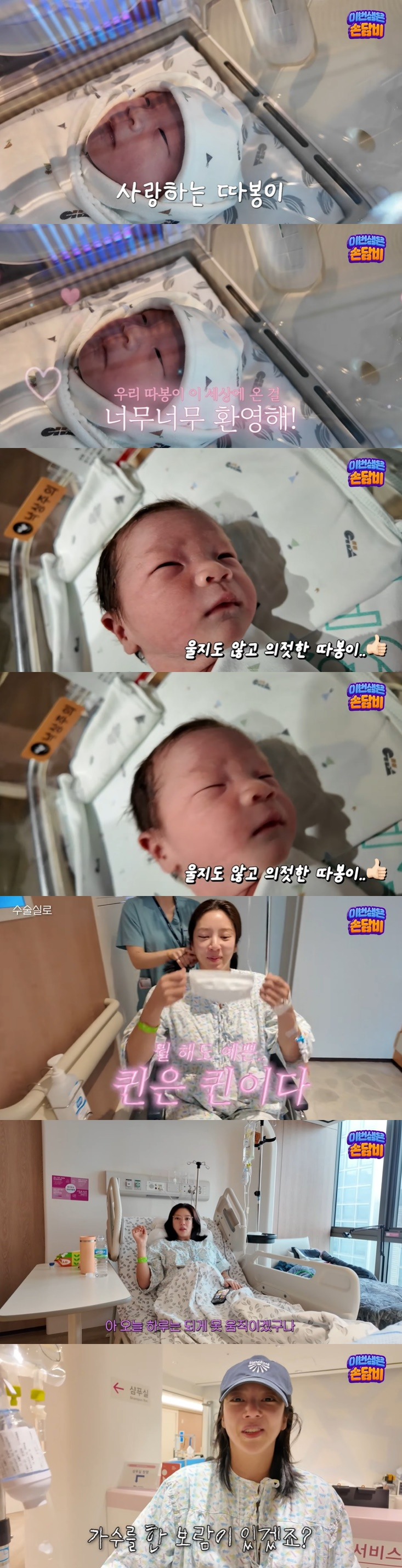 손담비는 "다행히 회복이 빨라서 괜찮은데 안 아픈 건 아니다. 말할 수 없는 고통인데 수술이 잘 돼서 다행이다. 아기를 두 번 안았다. 이제 2주간 조리원 가서 바짝 회복하겠다"라고 말했다.