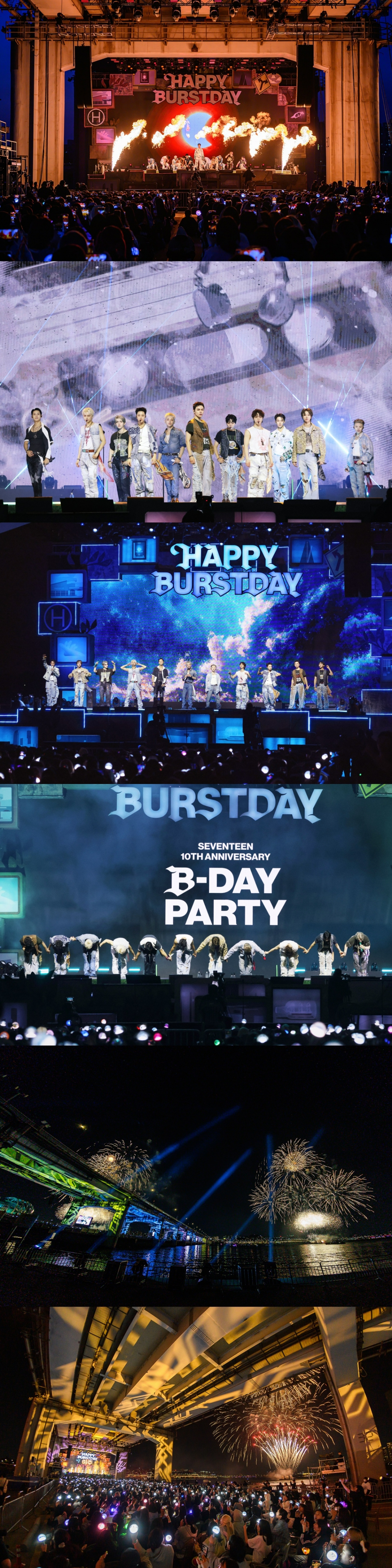 지난 25일 서울 잠수교에서 개최된 세븐틴의 'B-DAY PARTY : BURST Stage @잠수교(이하 BURST Stage)'는 이들의 격정적 재탄생을 알리는 파티 그 자체였다. 멤버들의 압도적인 퍼포먼스와 터질 듯한 에너지가 현장을 뜨겁게 달군 가운데, 오늘(26일) 발매되는 세븐틴 정규 5집 'THUNDER'와 수록곡 'HBD' 무대가 펼쳐져 관객들의 폭발적인 환호를 이끌어냈다.