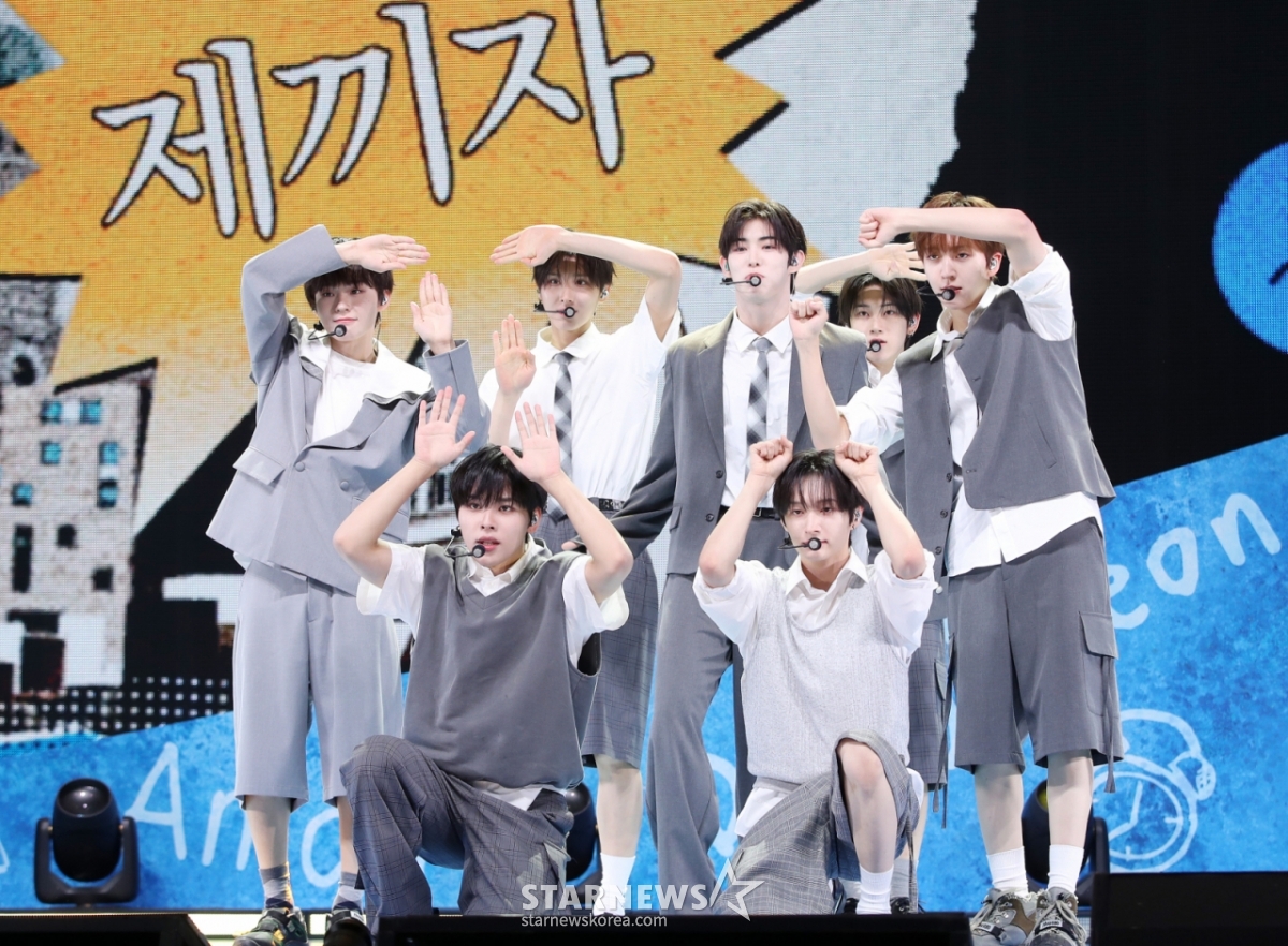 킥플립(계훈, 아마루, 동화, 주왕, 민제, 케이주, 동현)은 26일 오후 서울 광진구 광장동 예스24라이브홀에서 두 번째 미니앨범 '킥 아웃, 플립 나우!(Kick Out, Flip Now!)' 발매 기념 쇼케이스를 개최했다.