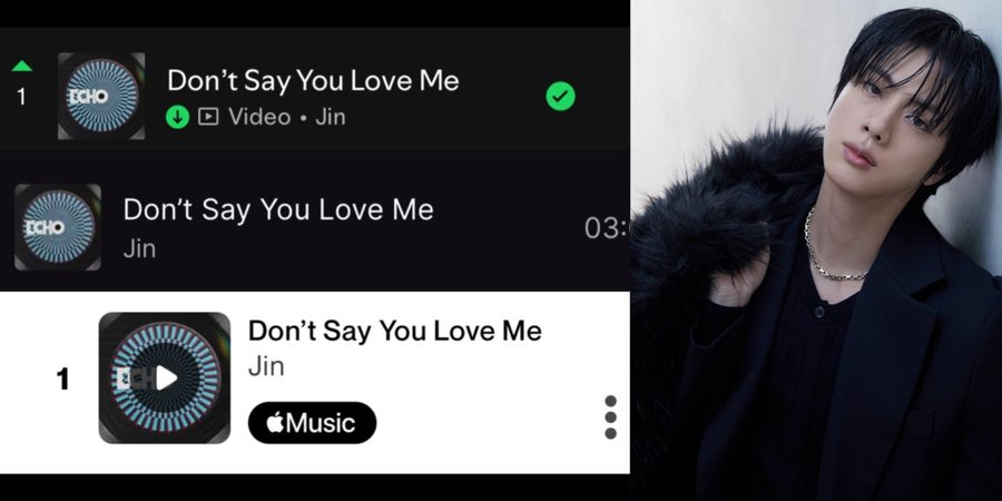 진의 두번째 솔로 앨범 '에코'(Echo)의 타이틀곡 '돈 세이 유 러브 미'(Don't Say You Love Me)는 5월 26일 발표된 전 세계(글로벌) 스포티파이 차트(5월 25일자)에서 1위에 오르며 압도적인 인기를 입증했다. '돈 세이 유 러브 미'는 그 이전까지 전 세계 스포티파이에서 3일 연속 2위를 차지했다. 스포티파이는 세계 최대 음원 플랫폼이다.