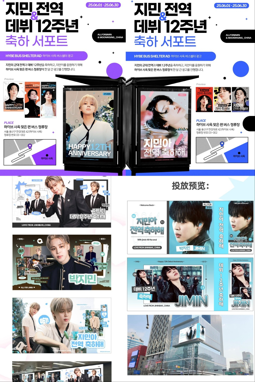 방탄소년단(BTS) 지민의 전역과 데뷔 12주년을 축하하는 팬들의 다채로운 이벤트가 추가로 공개됐다.