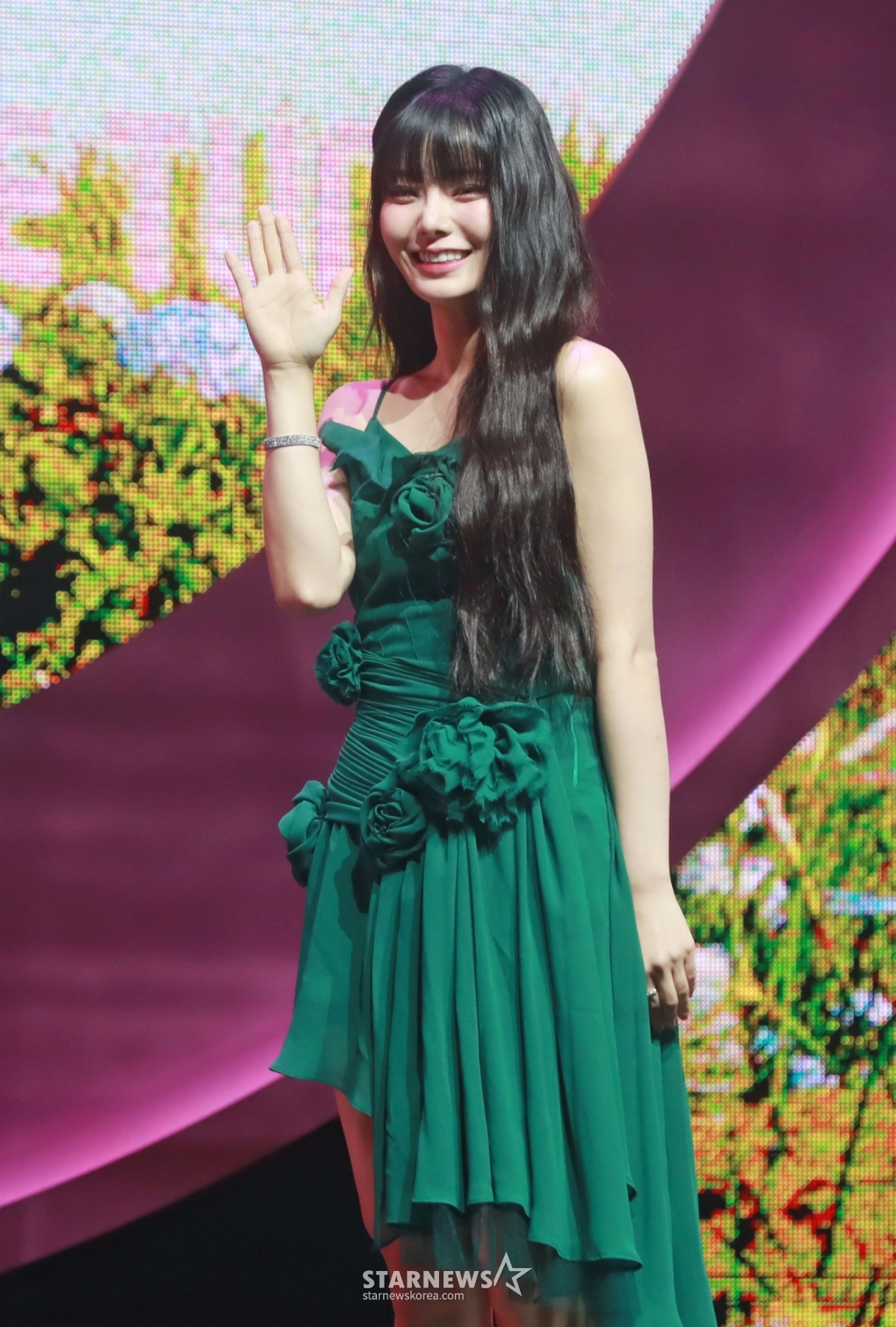 걸그룹 피프티피프티(FIFTY FIFTY) 키나가 20일 오후 서울 광진구 예스24라이브홀에서 진행된 두 번째 미니 앨범 '러브 튠'(Love Tune) 발매 기념 쇼케이스에서 포즈를 취하고 있다. '러브' 버전과 '튠' 버전 2가지로 발매되는 이번 앨범은 타이틀곡 'SOS'와 선공개 곡 '스타리 나잇'(Starry Night)'을 비롯해 '푸시 유어 러브'(Push Your Love), '그래비티'(Gravity), '스태리 나잇', 'SOS' 영어 버전까지 총 6개 곡이 수록됐다. /2024.09.20 /사진=이동훈