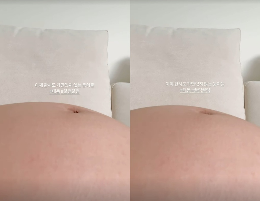레이디제인은 29일 자신의 SNS에 "어제 한시도 가만히 있지 않는 둥이들 #태동 #꿀렁꿀렁"이란 글과 함께 영상을 올렸다.