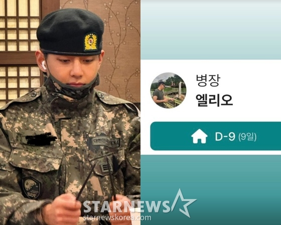 뷔는 1일 자신의 인스타그램에 "병장 엘리오 D-9"라는 전역일 계산 화면을 캡처해 올렸다.